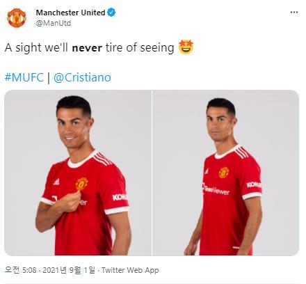 맨유 호날두 유니폼 | 새로운 맨유 유니폼을 입은 호날두의 모습 공식 맨체스터 유나이티드 웹사이트