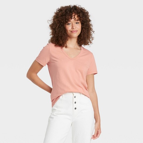Women S Short Sleeve V Neck T Shirt Universal Thread Peach Orange S Target