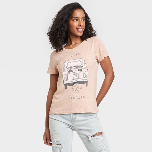Women S Just Married Short Sleeve Graphic T Shirt Peach Xs Target